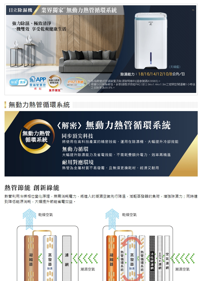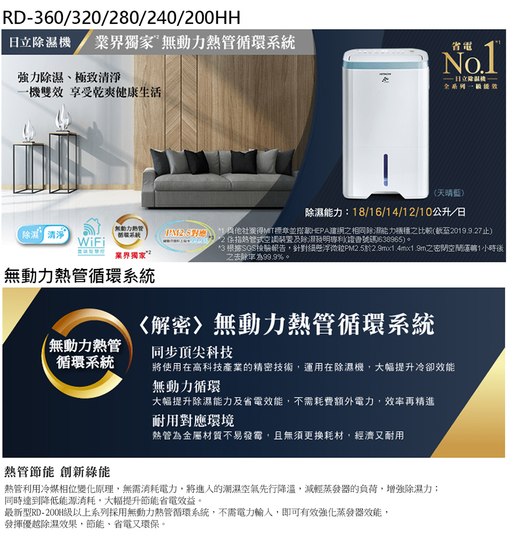 【HITACHI 日立】10公升 一級能效 清淨型 除濕機(RD-200HH1) MOMO購物 售價 14750 元,四種運轉模式,無動力熱管循環系統,1級能效... 規格說明